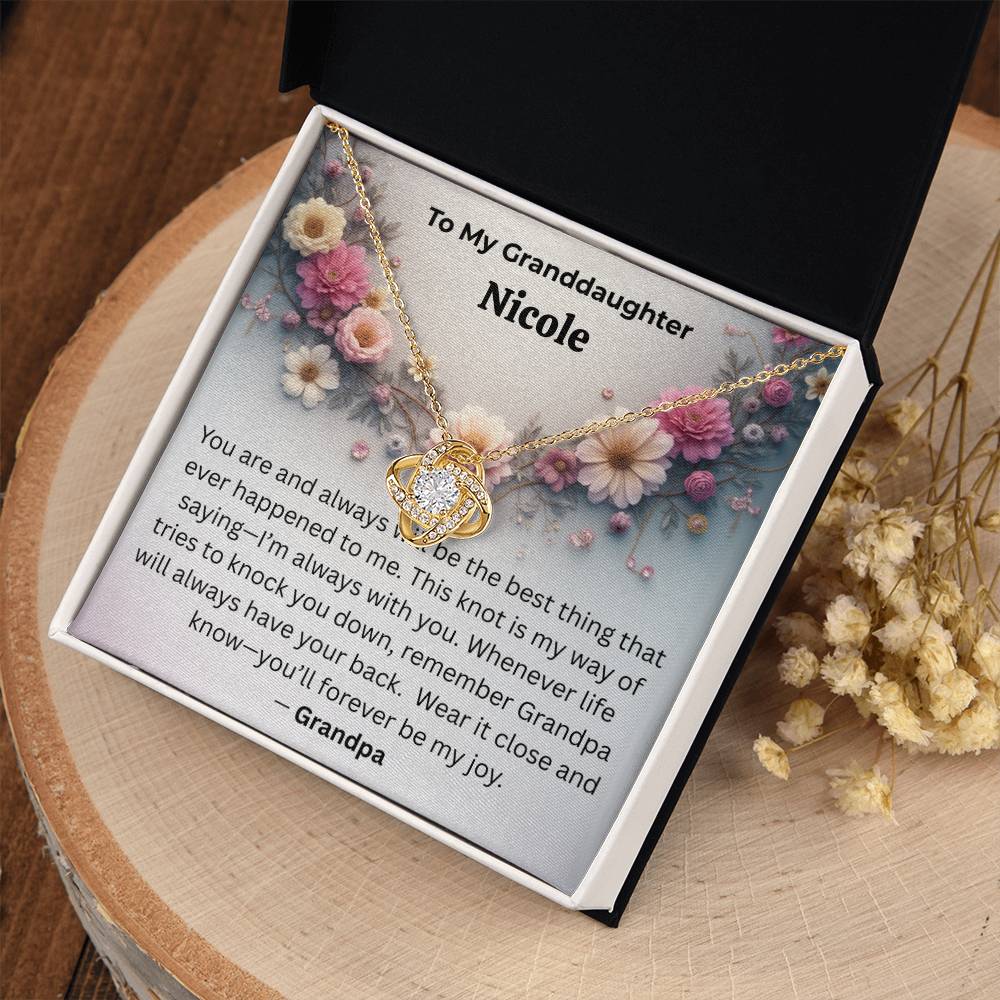 Personalized Granddaughter Love Knot Necklace – “You’ll Forever Be My Joy” from Grandpa