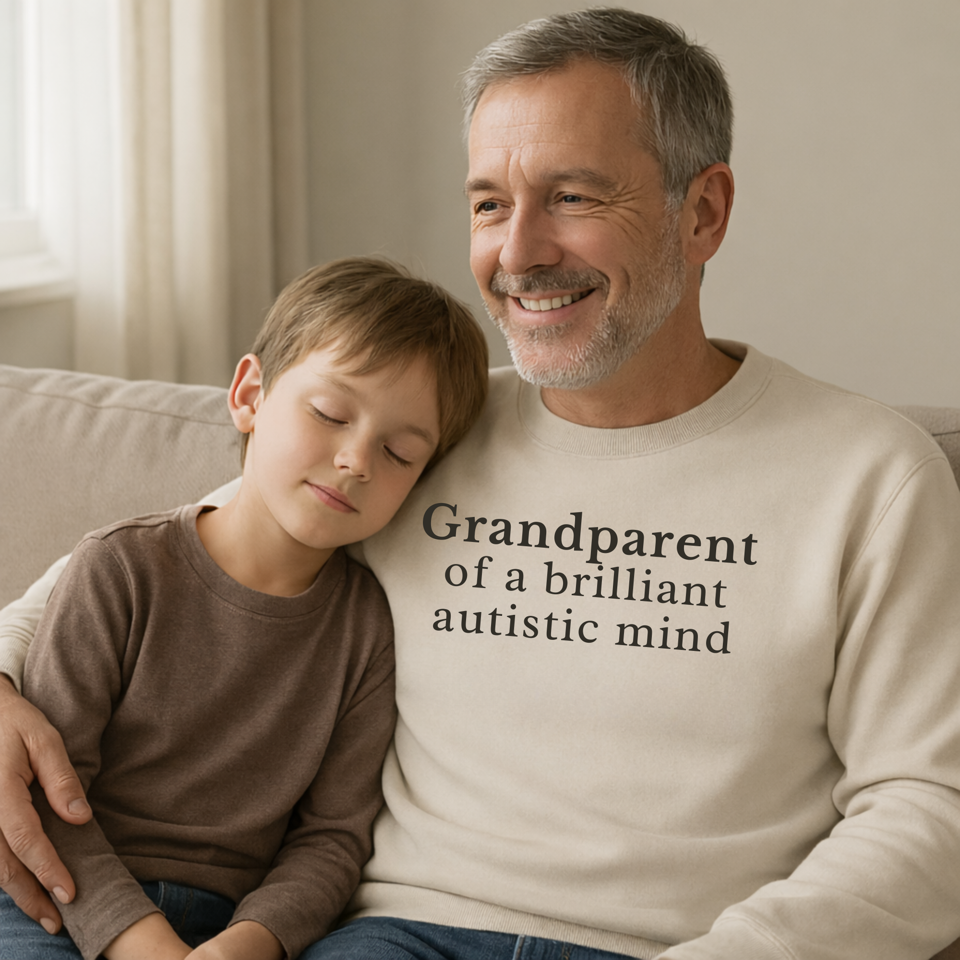 Celebrate neurodiversity with understated elegance in this premium crewneck sweatshirt. Featuring the affirming message "Grandparent of a brilliant autistic mind" in clean, centered embroidery, it's designed for those who lead with quiet pride rather than proclamation. Crafted from an 8.0 oz cotton-poly blend, the garment delivers substantial warmth and durability without bulk. Its tubular knit construction eliminates side seams for a refined silhouette, while double-needle stitching ensures longevity through countless wears. The versatile classic fit layers seamlessly over tees or beneath outerwear, making it equally at home during family gatherings or relaxed weekends. Constructed with OEKO-TEX certified dyes and ethically sourced US cotton, this sweatshirt reflects values as meaningful as its message. Machine wash cold; tumble dry low.